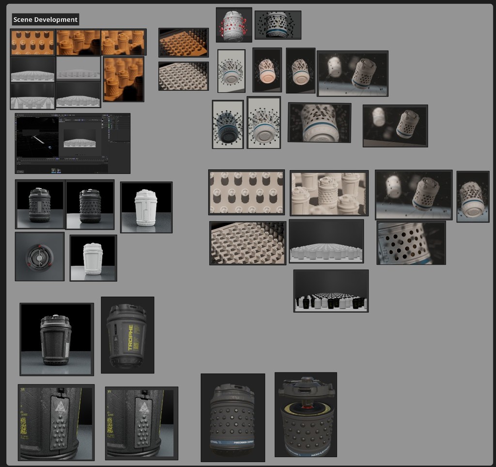 From the outset, my goal was not just to create a visually striking prop, but to fully understand and control each phase of the pipeline; from quick visual ideation, to mechanical detailing, to cinematic presentation. Throughout the process, I worked with a mix of CAD and sculpting tools, researched real-world ordnances, and maintained strict attention to functional cues, modularity, and narrative potential.